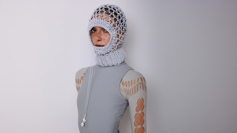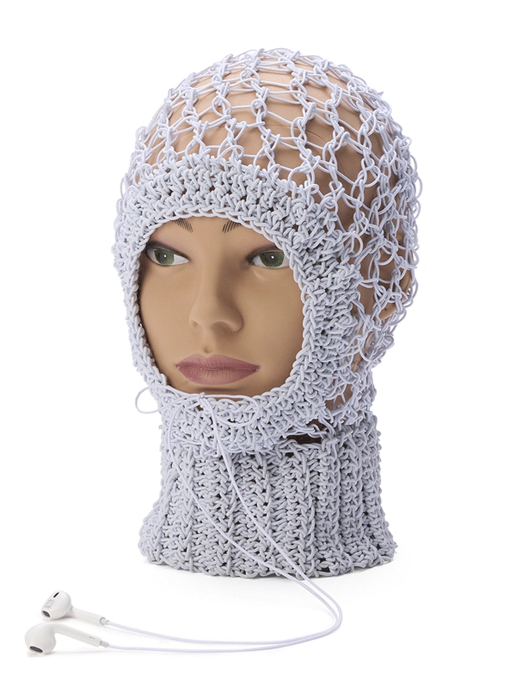 The collection reimagined luxury by transforming discarded tech into six fully functional art pieces, including flip-phone belt buckles, webcam candle holders, and knitted wire headphone balaclavas.